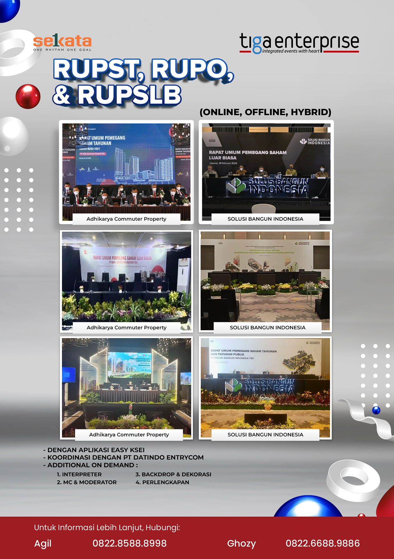 Elevate your Meetings, Incentives, Conferences, Exhibitions (MICE), or General Meeting of Shareholders (RUPS) with our expert services. At Tiga Enterprise, we ensure flawless execution—from venue arrangements to technical support—creating a professional and organized atmosphere for crucial business decisions and effective networking.